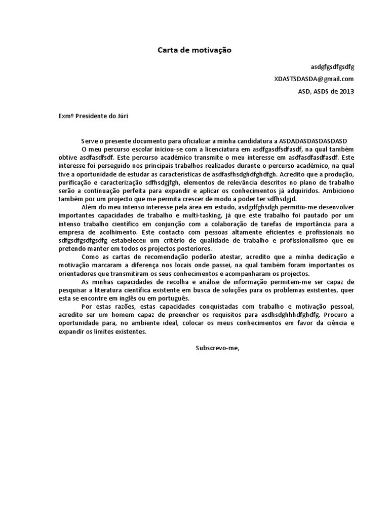 2º Exemplo De Carta De Motivação Para Candidatura A Mestrado.