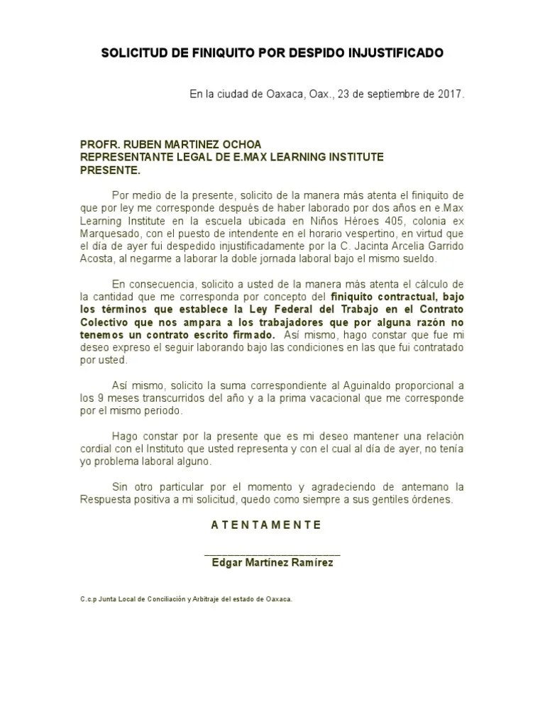 En esta carta tipo se encuentran las diferentes exigencias legales, las cuales deben. Este aviso debe entregarse pe